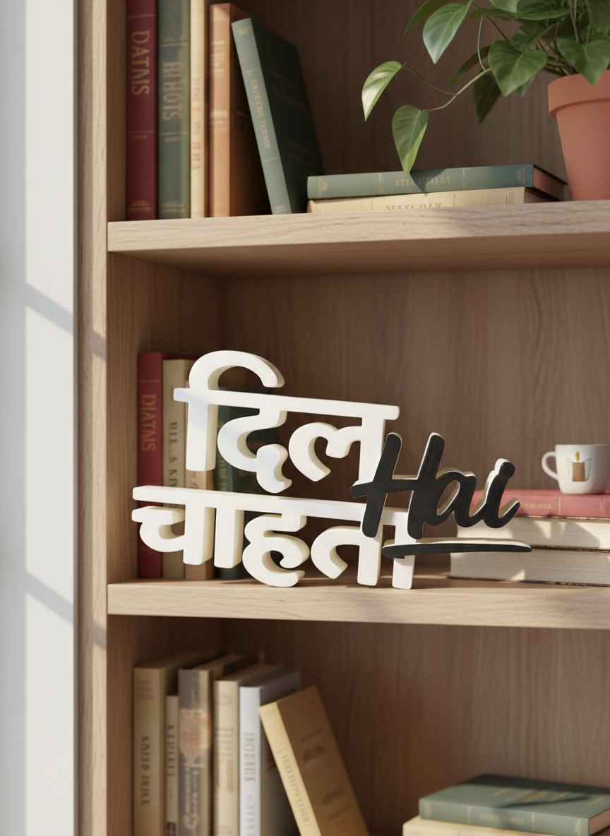 Add a bold and energetic vibe to your space with this “Ye Dil Mange More” 3D table sign. Designed in a stylish layered typography format, this freestanding decor piece brings motivation and personality to your desk, shelf, or office table.
